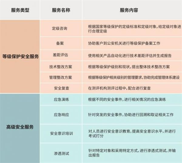 此外,结合用户实际需求,青藤云安全为用户提供了配套的等保安全服务,包括定级咨询、备案、差距评估、技术整改方案、管理整改方案、安全复查;高级安全服务,包括应急演练、应急响应、安全意识培训、渗透测试。