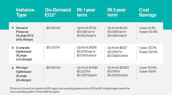 在AWS中实现成本节省且不必为第三方厂商帮助你降低成本而支付费用的一个方法就是使用AWS保留实例(RI)。除了定价结构不同外,这些实例与普通的按需实例是完全相同的。根据时间长短不同(一年或三年),公共云计算的单位时间使用成本比现货实例低9%至69%.