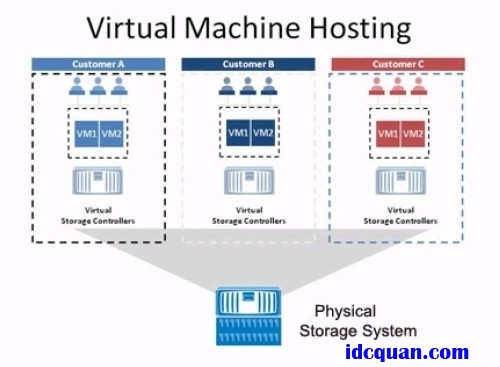 在多个客户中,每个客户在单一物理存储系统上被分配了一个“虚拟存储控制器”。每个虚拟控制器就像一个物理存储系统一样,能够被用于存储和管理多台虚拟机或满足其它存储需求。