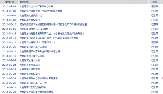 2014年6月,大麦网服务器漏洞未修补可能导致770W用户数据泄露;