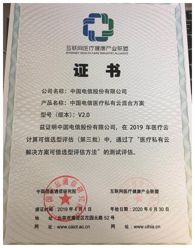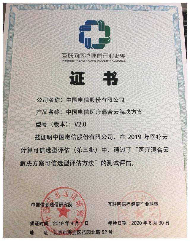 中国电信“医疗云解决方案”通过医疗云计算可信选型评估