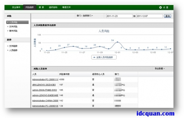 多维分析。通过对涉密人员、敏感文件、安全事件三个维度的趋势统计,解读安全态势。