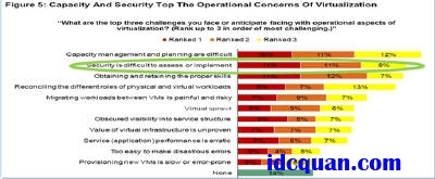 在互联网快速发展的今天,网络的安全是不可回避的问题,尤其是各种安全威胁对业务系统的潜在危害逐渐放大的今天,任何IT系统的建设都很难忽视安全问题的存在。而各种“私有云”或是“公有云”的数据中心建设,安全、高效的业务交付也是其成功的基础和必备的要求。每一刻建设的环节,包括物理环境的搭建过程、云计算业务系统的构建、服务器存储资源池的部署,以及系统的运营操作等,都是安全风险的潜在制造者和影响系统安全交付的因素。来自Forrester Consulting 2011年的调查报告显示(如图1所示),在云计算的部署过