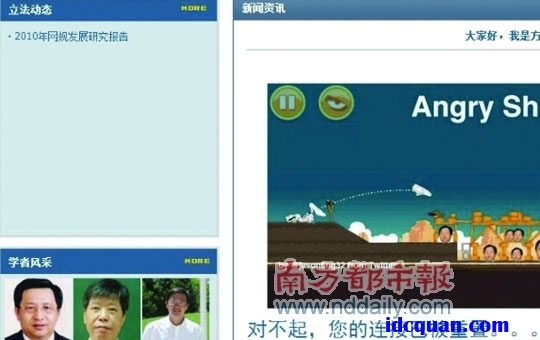 中国IDC圈11月21日报道:北京邮电大学互联网治理与法律研究中心的网站遭遇黑客攻击,网站页面被篡改为了一个类似于“愤怒的小鸟”的游戏,只不过“愤怒的小鸟”游戏中的目标被换成了北邮校长方滨兴的头像,武器也由小鸟变成了鞋子。这个游戏被起名为“AngryShoes”(愤怒的鞋子)。