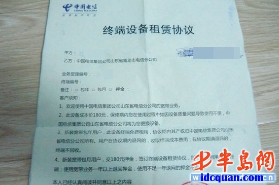 中国IDC圈9月16日报道:家里的宽带莫名被“绑架”,多花钱选择的单独包年业务,也被人私改成了宽带手机捆绑的优惠业务。近日,家住胶州市的曹先生反映,自己的个人信息被中国电信盗用。对此,电信回复解释说,造成这样的结果,可能是某些代理商违规操作。作为补偿,将会保证顾客的宽带在1年内不断网,绑定的手机号所造成的任何后果,都和顾客没有关系。