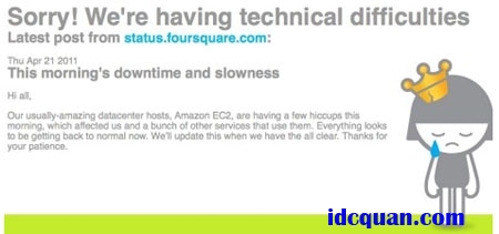 上周四,由于亚马逊网页服务器出现故障,包括基于位置的社交网站FoureSquare,问题和解答服务商Quora;新闻共享网站Reddit以及为网络出版商提供游戏工具的BigDoor瘫痪。