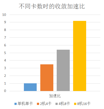 图:使用不同卡数时,在中英100万训练语料上获得的收敛加速比